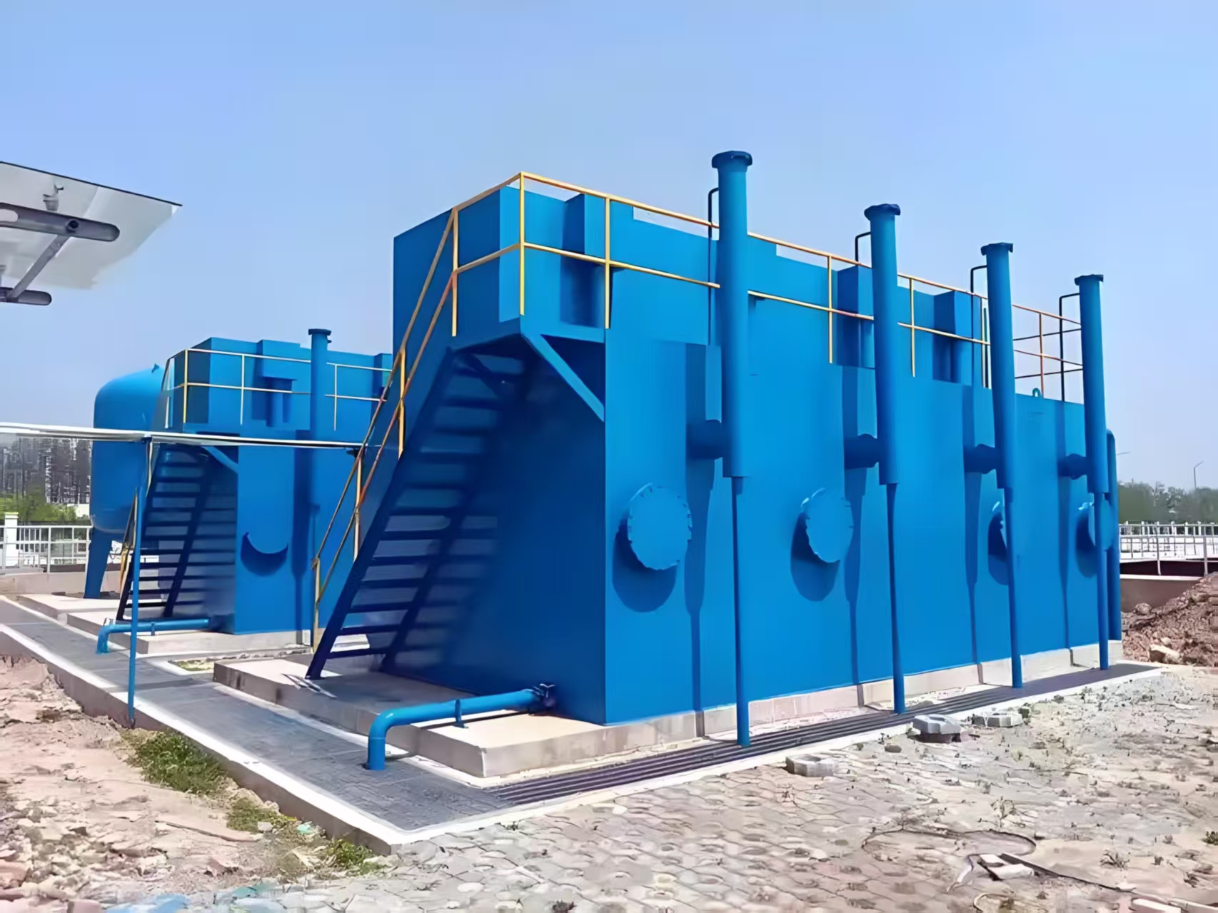 一体化集成:将混合、絮凝、沉淀、过滤、消毒等多个净水单元高度集成在一个或几个紧凑的集装箱式或钢制模块内,节省占地。